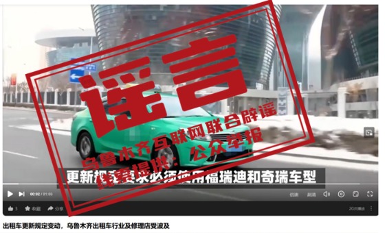 据“新疆网络辟谣”微信公众号消息,近日,有网民反映“乌鲁木齐市规定出租车更新必须使用限定车型”的相关信息在互联网平台传播,引发社会关注。