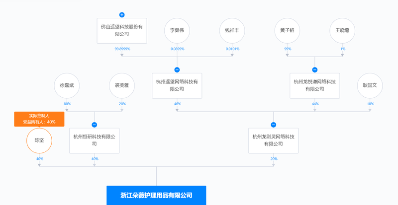 据变更记录,今年3月起,浙江朵薇护理用品有限公司发生一系列变更,变更前公司名称为浙江米派护理用品有限公司;3月21日,杭州千芝雅卫生用品有限公司退出股东行列,退出时持股比例为60%;4月新增杭州龙则灵网络科技有限公司为股东,持股比例为20%。