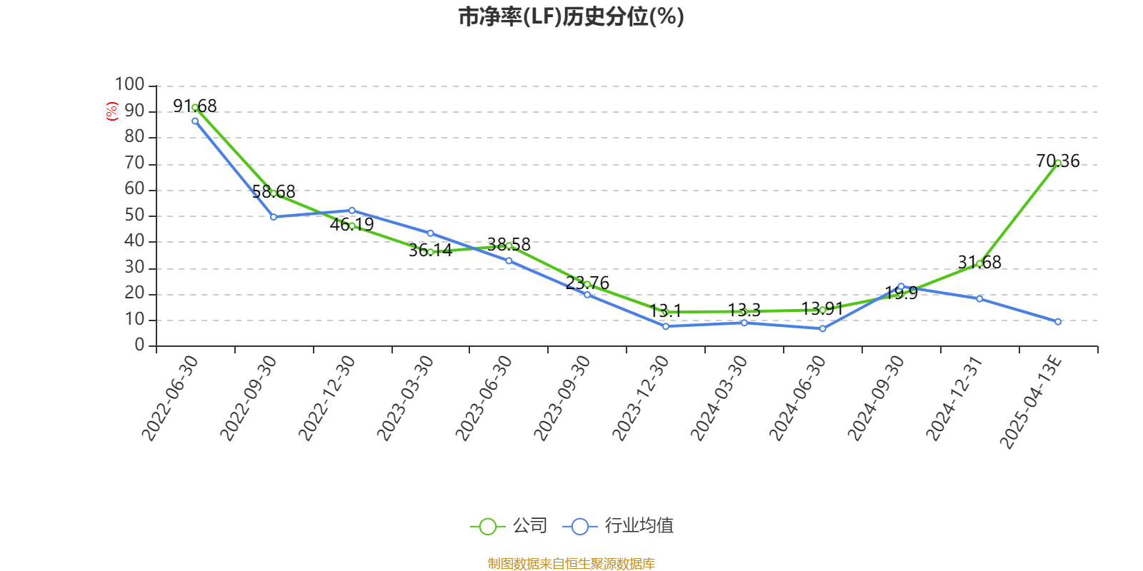 市盈率、市净率为负时,不显示当期分位数,会导致折线图中断。