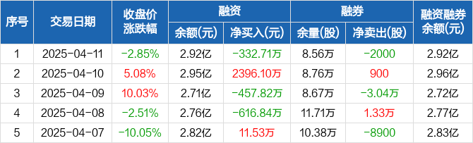 厦门港务融资融券信息显示,2025年4月11日融资净偿还332.71万元;融资余额2.92亿元,较前一日下降1.13%。