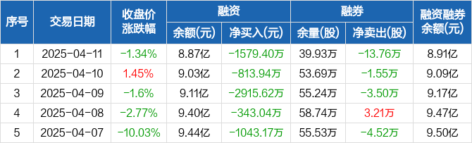 中科三环融资融券信息显示,2025年4月11日融资净偿还1579.4万元;融资余额8.87亿元,较前一日下降1.75%。