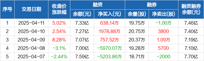 振华科技融资融券信息显示,2025年4月11日融资净买入638.14万元;融资余额7.33亿元,较前一日增加0.88%。