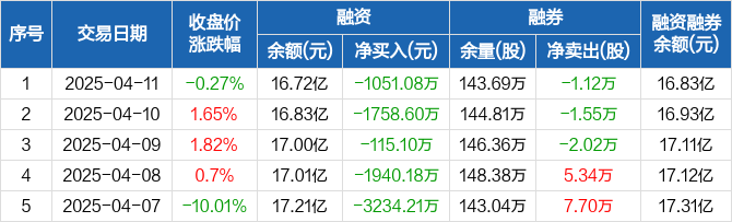 西部证券融资融券信息显示,2025年4月11日融资净偿还1051.08万元;融资余额16.72亿元,较前一日下降0.62%。