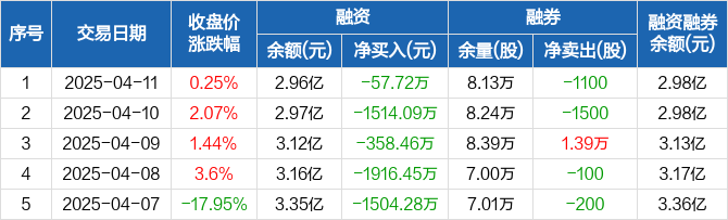 立中集团融资融券信息显示,2025年4月11日融资净偿还57.72万元;融资余额2.96亿元,较前一日下降0.19%。