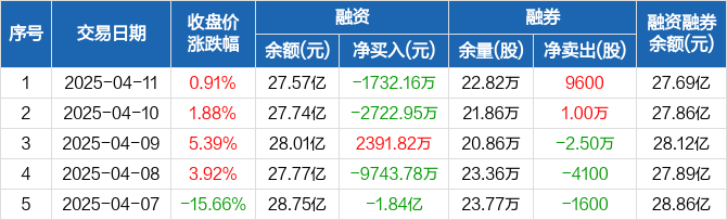 软通动力融资融券信息显示,2025年4月11日融资净偿还1732.16万元;融资余额27.57亿元,较前一日下降0.62%。