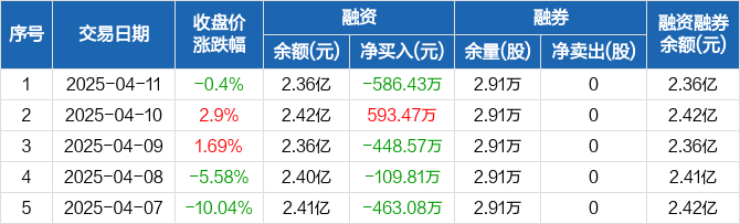 得润电子融资融券信息显示,2025年4月11日融资净偿还586.43万元;融资余额2.36亿元,较前一日下降2.42%。