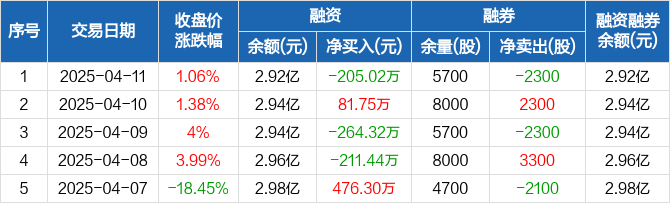 绿盟科技融资融券信息显示,2025年4月11日融资净偿还205.02万元;融资余额2.92亿元,较前一日下降0.7%。