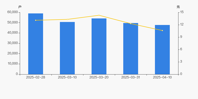 截至2025年4月10日,公司最新总股本为4.65亿股,其中流通股本为3.7亿股。户均持有流通股数量由上期的7460股上升至7754股,户均流通市值8.22万元。