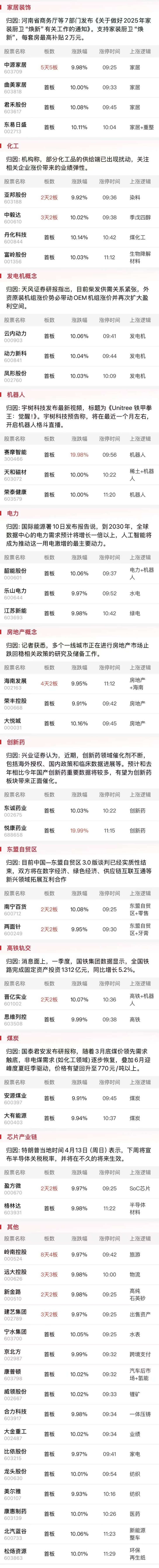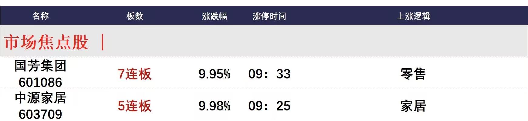 今日午盘全市场共98股涨停,连板股总数13只,18股封板未遂,封板率为84%(不含ST股、退市股)。焦点股方面,零售板块国芳集团7连板、广百股份5天3板,家居股中源家居5连板。