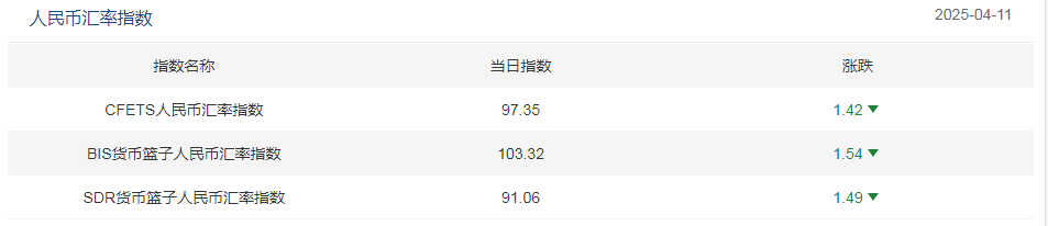 外汇交易中心数据显示,三大人民币汇率指数延续了上周的下跌态势。14日,CFETS人民币汇率指数报97.35,环比下跌1.42,创下2023年9月以来的新低;BIS货币篮子人民币汇率指数报103.32,环比下跌1.54,创下2024年1月以来的新低;SDR货币篮子人民币汇率指数报91.06,环比下跌1.49,创下2020年9月以来的新低。