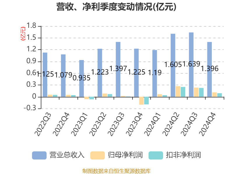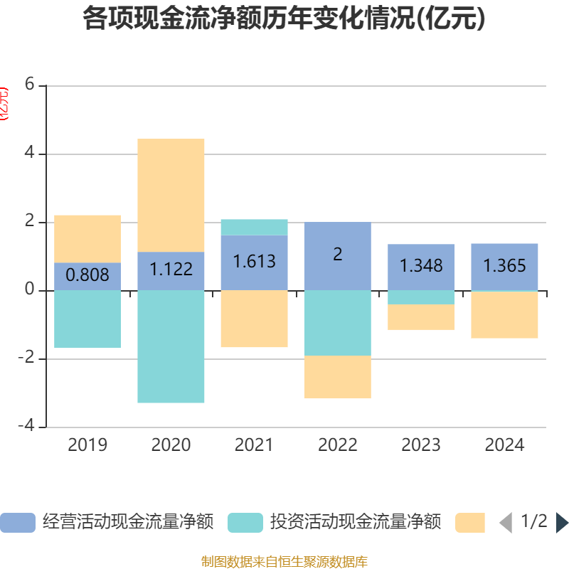 截至2024年,公司经营活动现金流净额为1.36亿元,同比增长1.2%;筹资活动现金流净额-1.36亿元,同比减少6117.41万元;投资活动现金流净额-492.95万元,上年同期为-4162.89万元。