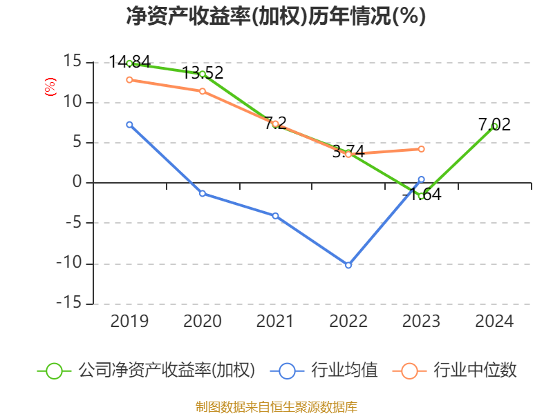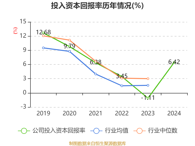 数据显示,2024年公司加权平均净资产收益率为7.02%,较上年同期上升8.66个百分点。公司2024年投入资本回报率为6.42%,较上年同期上升7.53个百分点。