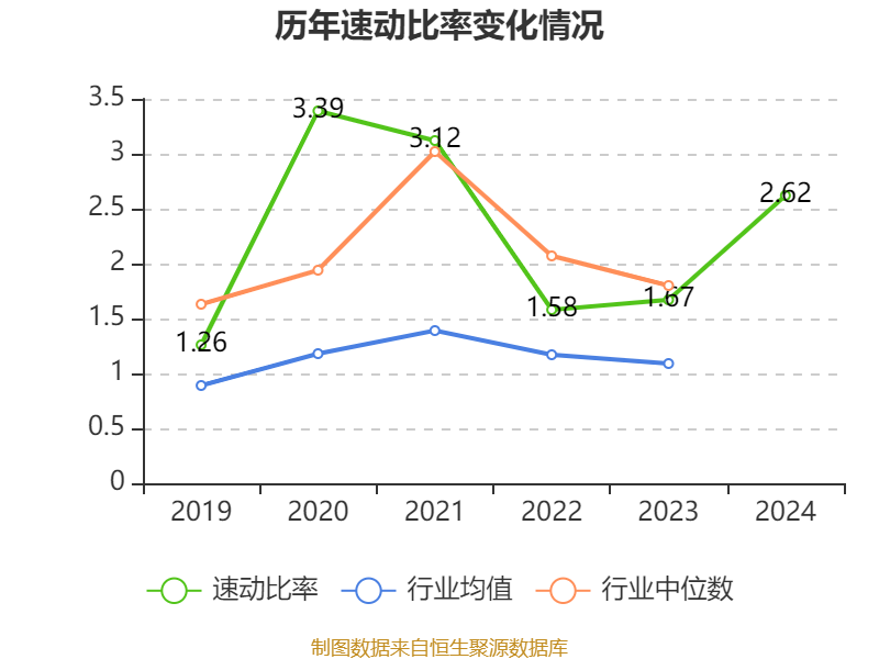 2024年,公司流动比率为3.71,速动比率为2.62。