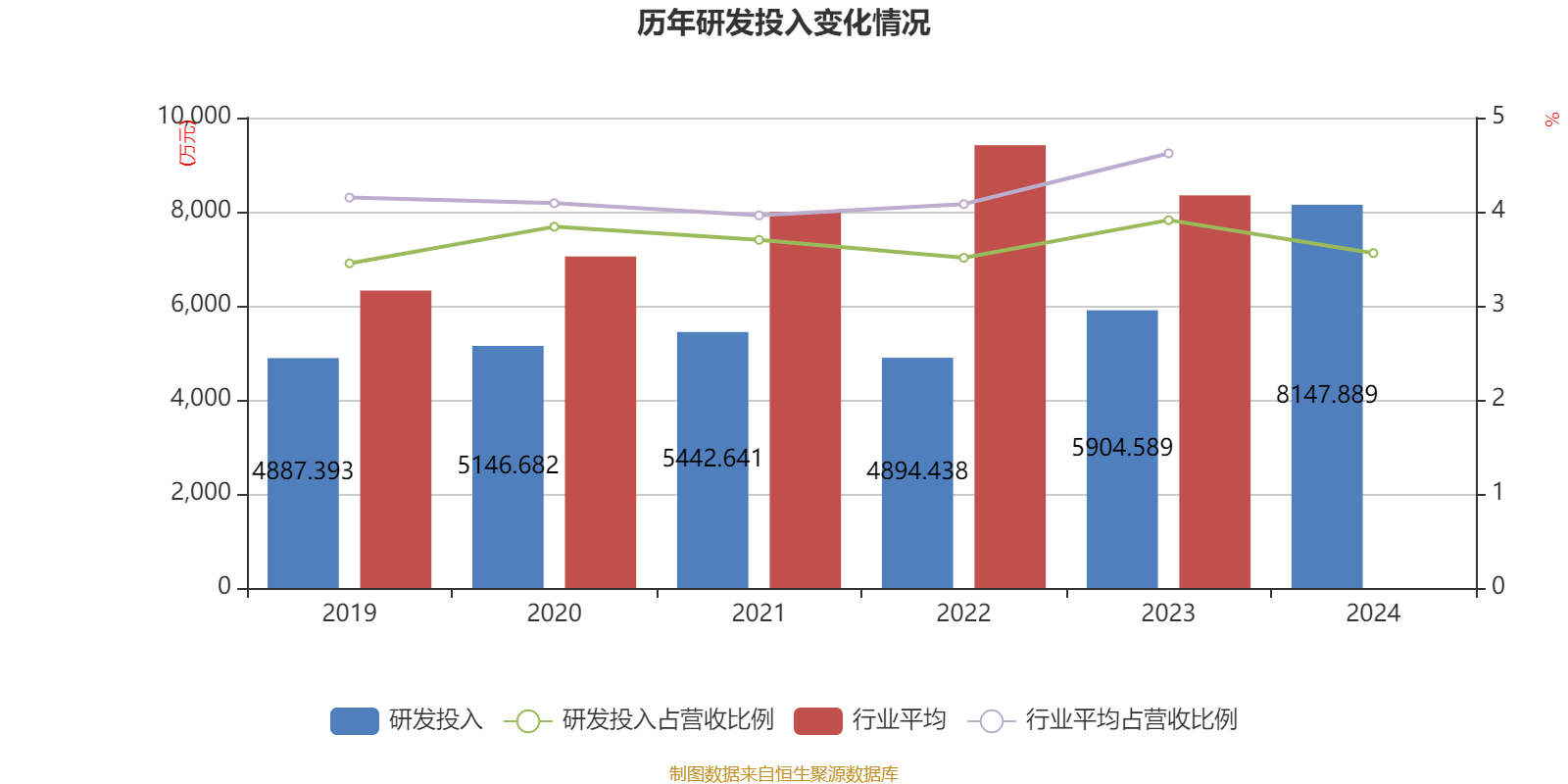 2024年全年,公司研发投入金额为8147.89万元,同比增长37.99%;研发投入占营业收入比例为3.56%,相比上年同期下降0.35个百分点。此外,公司全年研发投入资本化率为0%。