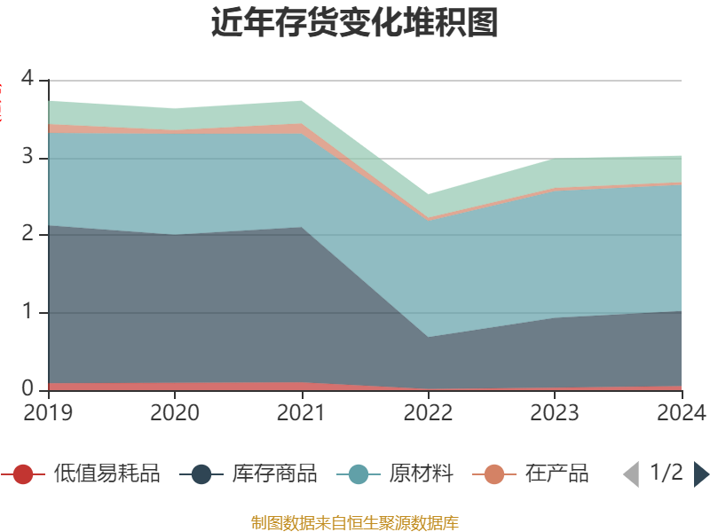 从存货变动来看,截至2024年末,公司存货账面价值为3.02亿元,占净资产的22.2%,较上年末增加333.84万元。其中,存货跌价准备为932.08万元,计提比例为2.99%。