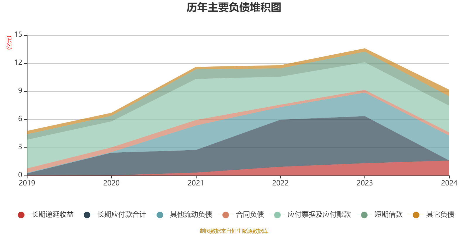 负债重大变化方面,截至2024年末,公司长期应付款合计较上年末减少100%,占公司总资产比重下降22.11个百分点;长期递延收益较上年末增加21.49%,占公司总资产比重上升1.23个百分点;应交税费较上年末增加746.9%,占公司总资产比重上升0.98个百分点;其他流动负债较上年末增加5.72%,占公司总资产比重上升0.62个百分点。