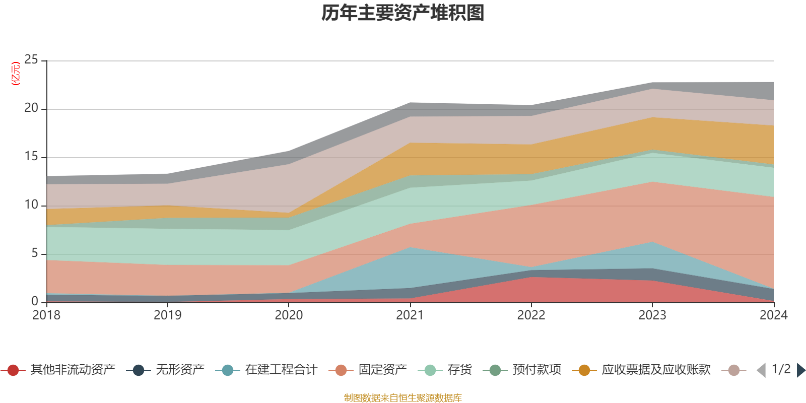 资产重大变化方面,截至2024年末,公司固定资产较上年末增加52.92%,占公司总资产比重上升14.41个百分点;在建工程合计较上年末减少99.2%,占公司总资产比重下降11.95个百分点;其他非流动资产较上年末减少94.21%,占公司总资产比重下降9.28个百分点;其他应收款(含利息和股利)较上年末增加9885.91%,占公司总资产比重上升3.45个百分点。