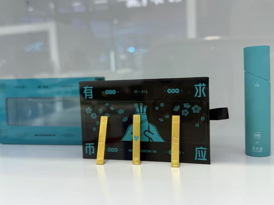 在得物展台,周大生与得物App联名的“黄金上上签”就是一款击中年轻人情绪需求的商品。“我们发现,现在很多年轻人除了追求性价比之外,也很注重‘情价比’。”得物展台工作人员介绍,“黄金上上签”以传统求签文化为灵感,通过现代设计语言,赋予黄金制品祈福纳祥的新内涵,满足了年轻人对美好生活的期许。凭借情绪价值,这款创新产品也在市场上创造了销售奇迹,在得物App上线1分钟销量即突破10万件,带动品牌单日销售额环比增长140%。