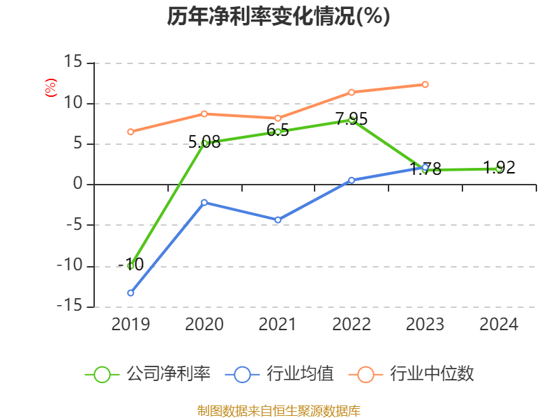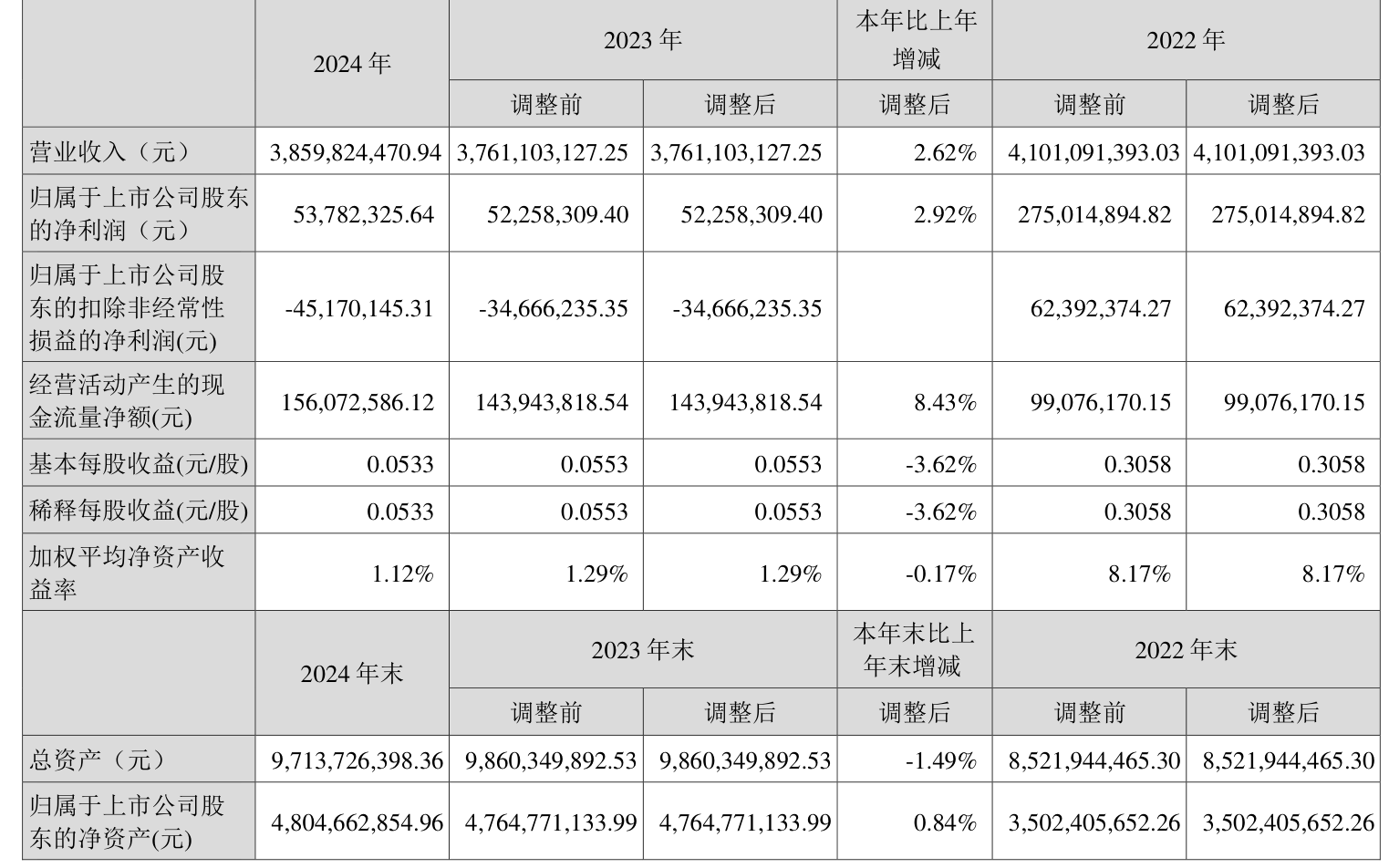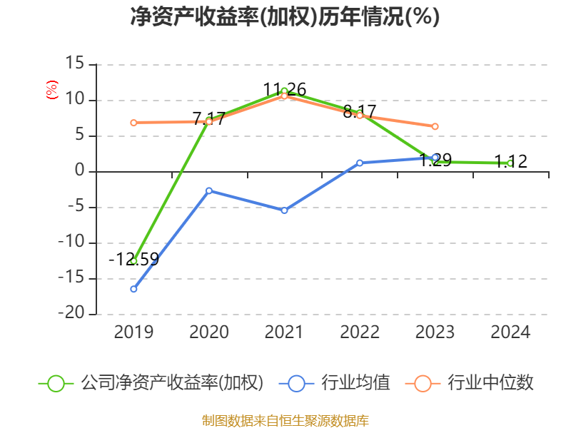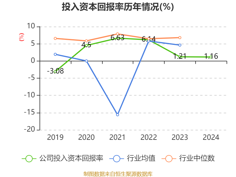 数据显示,2024年公司加权平均净资产收益率为1.12%,较上年同期下降0.17个百分点。公司2024年投入资本回报率为1.16%,较上年同期下降0.05个百分点。