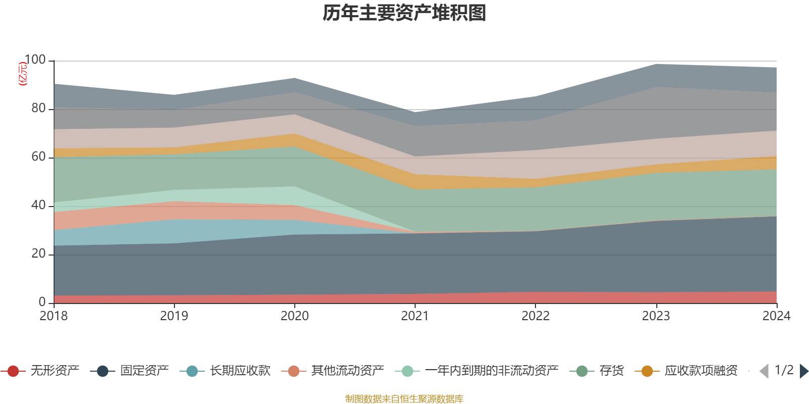 资产重大变化方面,截至2024年末,公司货币资金较上年末减少26.31%,占公司总资产比重下降5.47个百分点;固定资产较上年末增加5.35%,占公司总资产比重上升2.07个百分点;应收款项融资较上年末增加53.53%,占公司总资产比重上升2个百分点;交易性金融资产合计占公司总资产的0.72%,上年末为0。