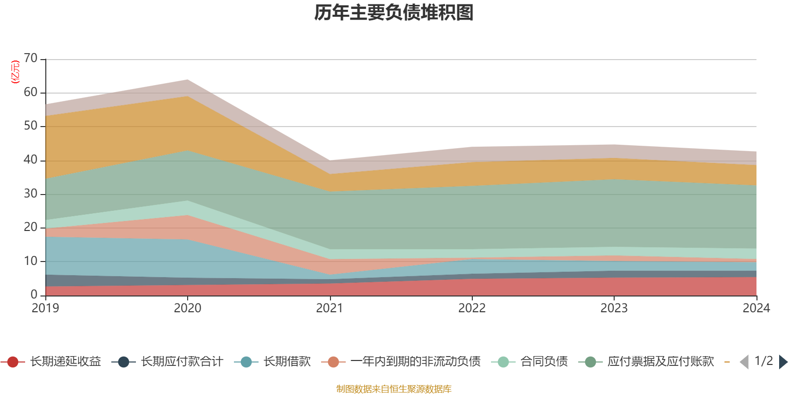 负债重大变化方面,截至2024年末,公司应付票据及应付账款较上年末减少6.53%,占公司总资产比重下降1.04个百分点;一年内到期的非流动负债较上年末减少42.24%,占公司总资产比重下降0.7个百分点;合同负债较上年末增加22.2%,占公司总资产比重上升0.62个百分点;长期借款较上年末减少12.91%,占公司总资产比重下降0.34个百分点。