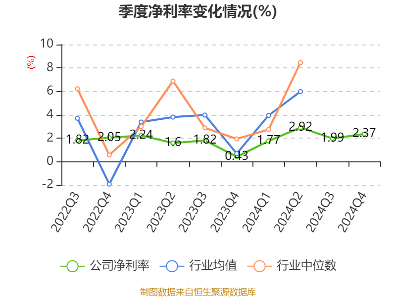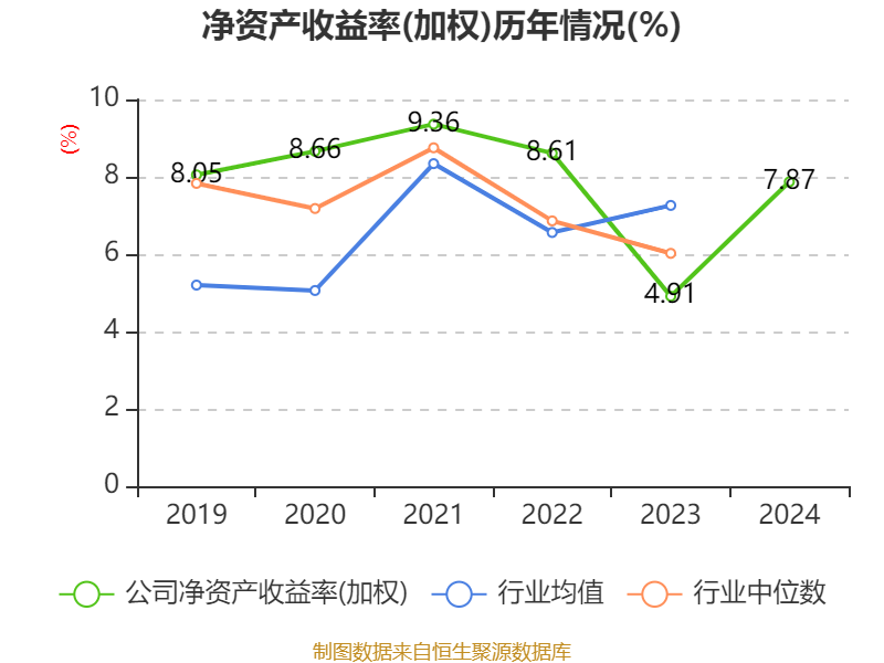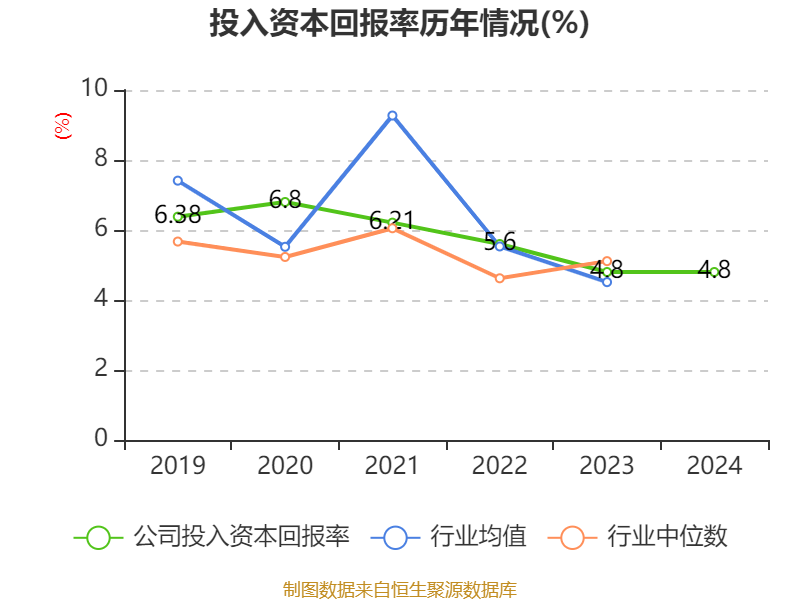 数据显示,2024年公司加权平均净资产收益率为7.87%,较上年同期上升2.96个百分点。公司2024年投入资本回报率为4.8%,较上年同期持平。