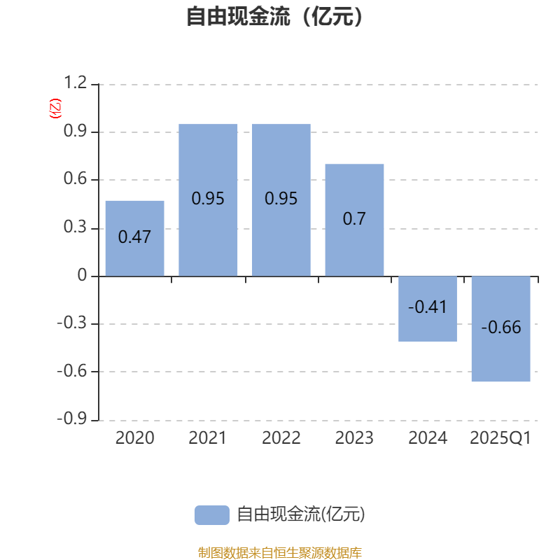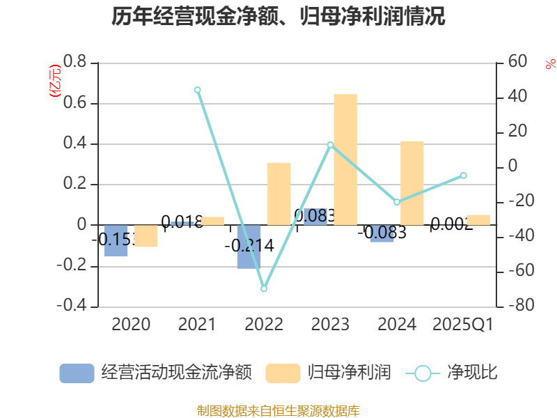 截至2025年一季度末,公司经营活动现金流净额为-23.73万元,同比增加6841.56万元;筹资活动现金流净额2148.28万元,同比增加4143.37万元;投资活动现金流净额1073.87万元,上年同期为1073.3万元。