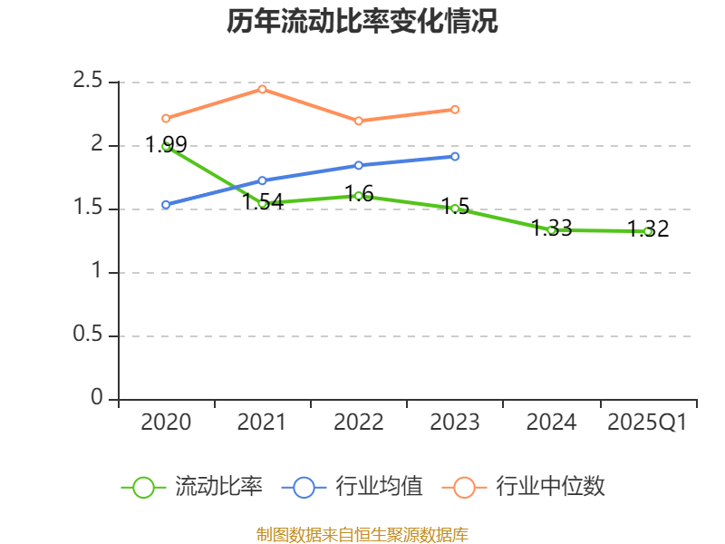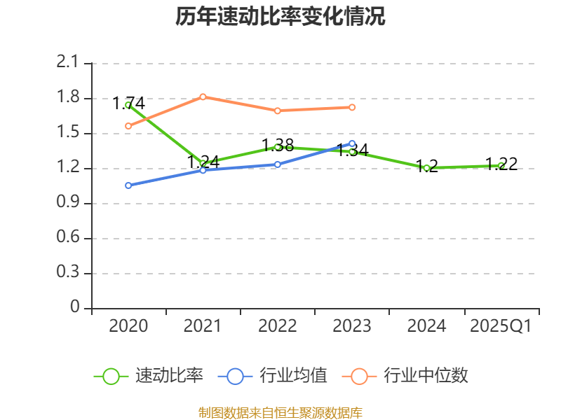 2025年第一季度,公司流动比率为1.32,速动比率为1.22。