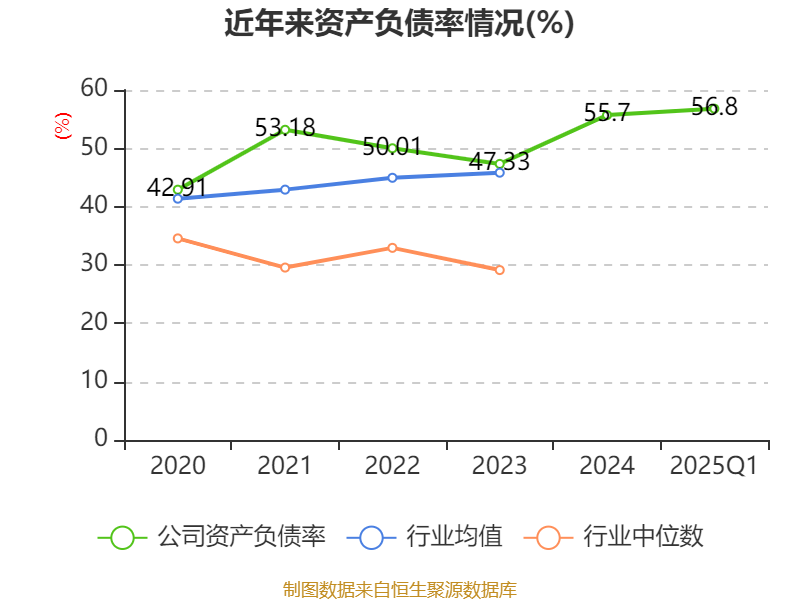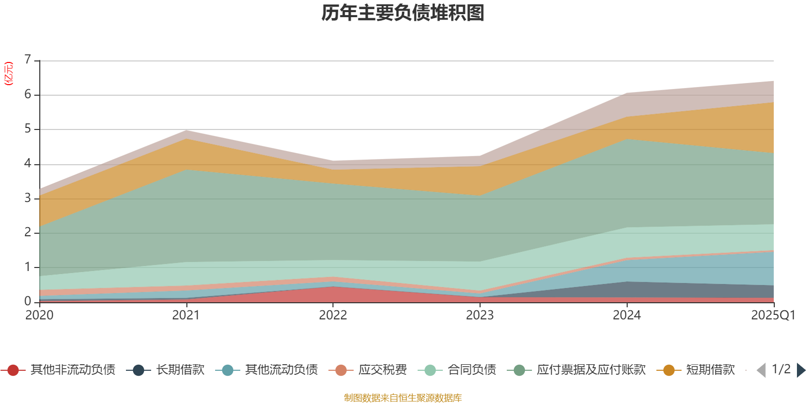 负债重大变化方面,截至2025年一季度末,公司短期借款较上年末增加128.18%,占公司总资产比重上升7.13个百分点;应付票据及应付账款较上年末减少19.43%,占公司总资产比重下降5.23个百分点;其他流动负债较上年末增加56.12%,占公司总资产比重上升2.9个百分点;合同负债较上年末减少14.8%,占公司总资产比重下降1.44个百分点。