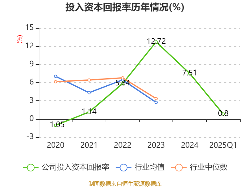 盈利能力方面, 2025年一季度公司加权平均净资产收益率为1.03%,同比上升0.72个百分点。公司2025年第一季度投入资本回报率为0.8%,较上年同期上升0.39个百分点。