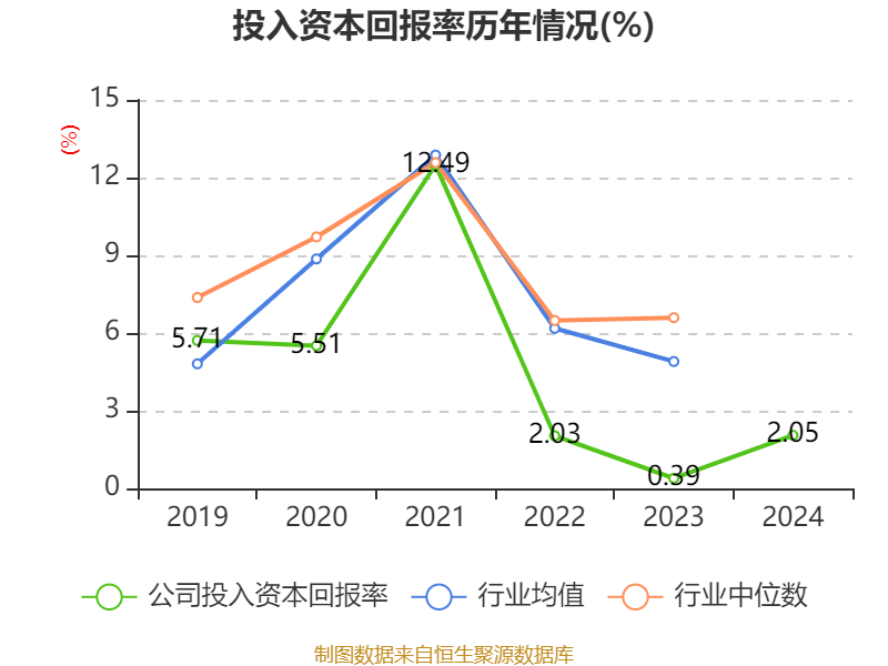 数据显示,2024年公司加权平均净资产收益率为2.79%,较上年同期上升1.33个百分点。公司2024年投入资本回报率为2.05%,较上年同期上升1.66个百分点。