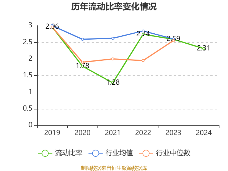2024年,公司流动比率为2.31,速动比率为2.02。