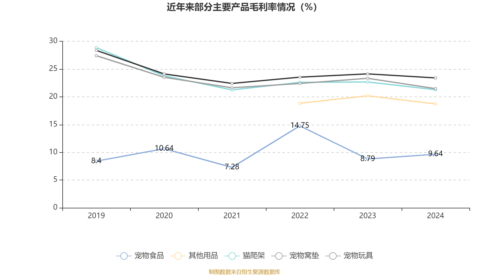 资料显示,公司以宠物用品的设计开发、生产和销售业务为基础,积极拓展宠物食品销售业务,产品涵盖了宠物窝垫、猫爬架、宠物食品、宠物玩具、宠物服饰、电子用品等多系列、全品类宠物产品。