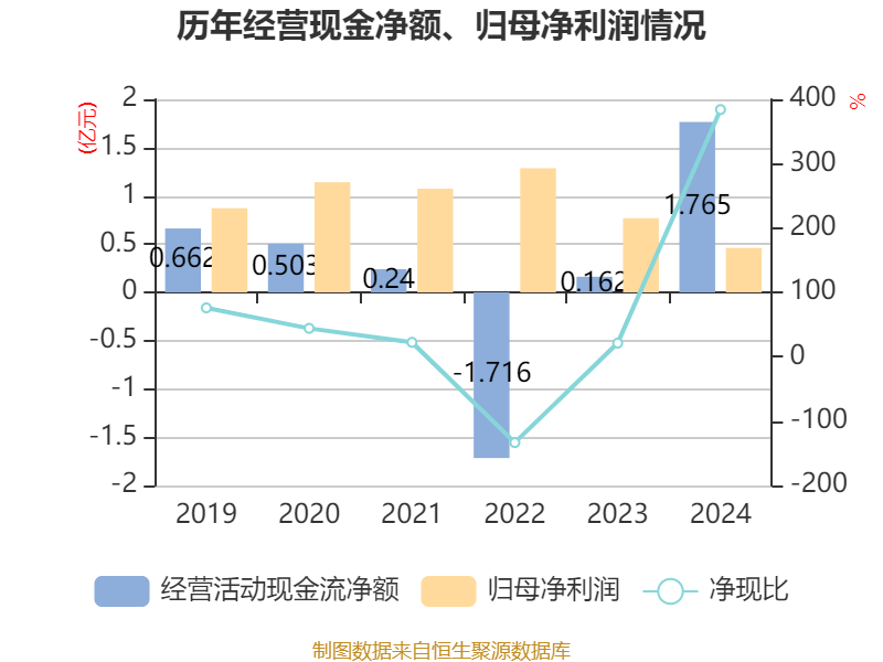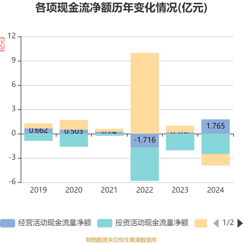 截至2024年,公司经营活动现金流净额为1.77亿元,同比增长987.22%;筹资活动现金流净额-1.43亿元,同比减少2.26亿元;投资活动现金流净额-2.52亿元,上年同期为-2.05亿元。