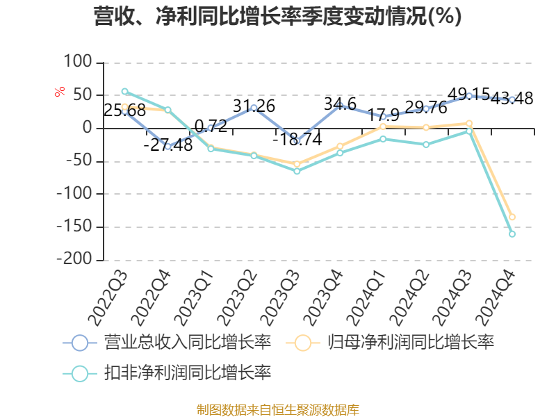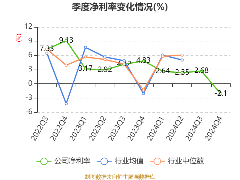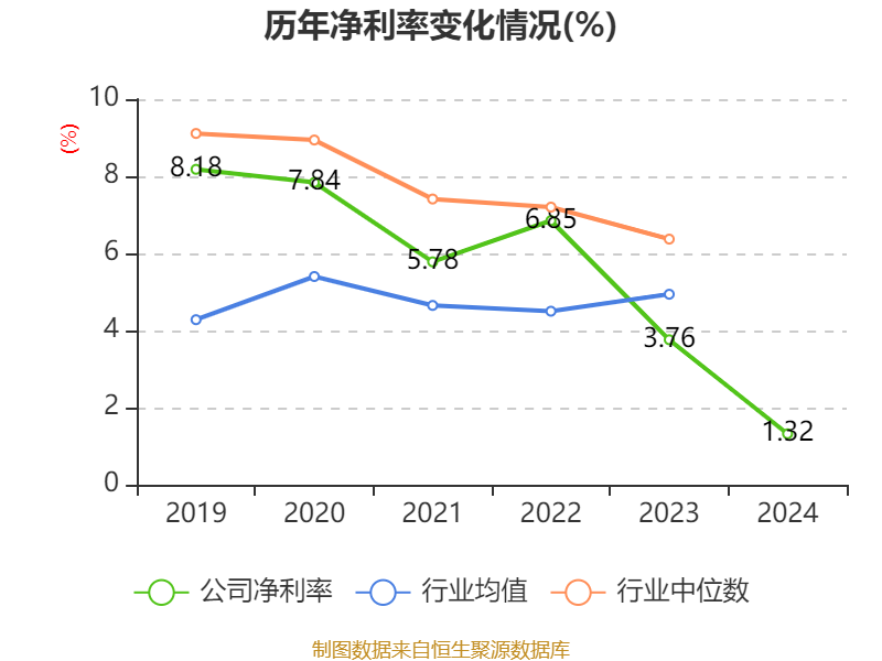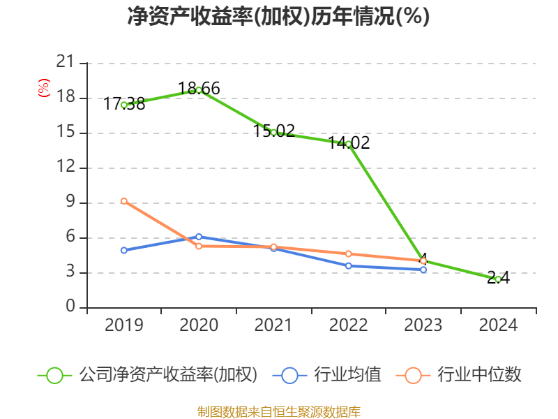 数据显示,2024年公司加权平均净资产收益率为2.4%,较上年同期下降1.6个百分点。公司2024年投入资本回报率为1.82%,较上年同期下降1.79个百分点。