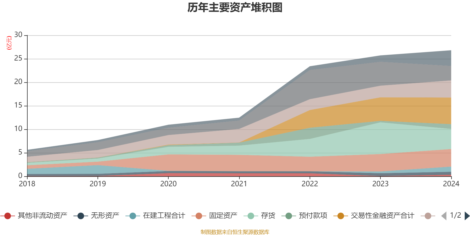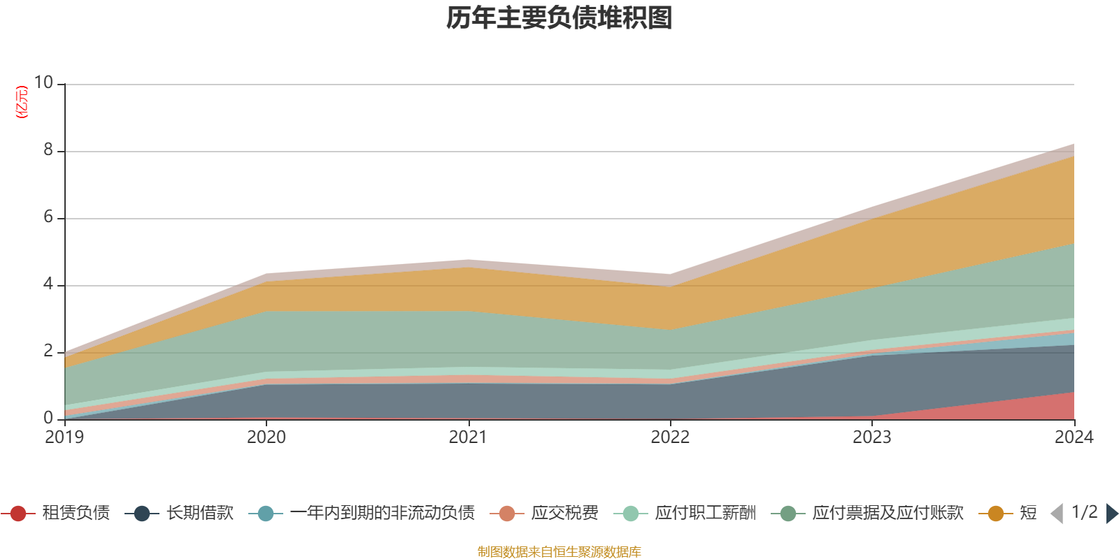 负债重大变化方面,截至2024年末,公司租赁负债较上年末增加757.39%,占公司总资产比重上升2.64个百分点;应付票据及应付账款较上年末增加43.99%,占公司总资产比重上升2.28个百分点;长期借款较上年末减少21.84%,占公司总资产比重下降1.76个百分点;短期借款较上年末增加26.07%,占公司总资产比重上升1.68个百分点。