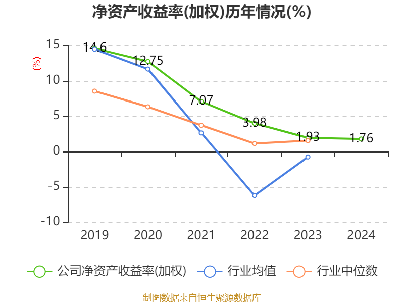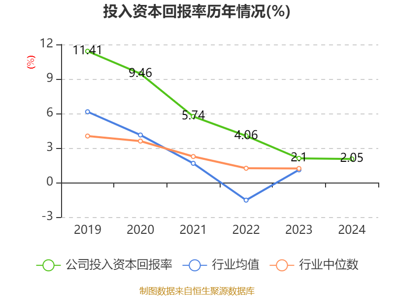 数据显示,2024年公司加权平均净资产收益率为1.76%,较上年同期下降0.17个百分点。公司2024年投入资本回报率为2.05%,较上年同期下降0.05个百分点。