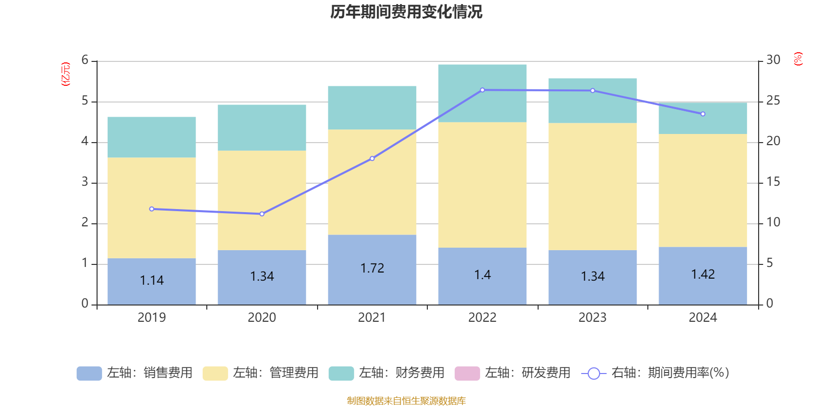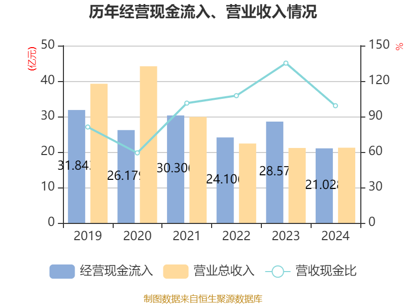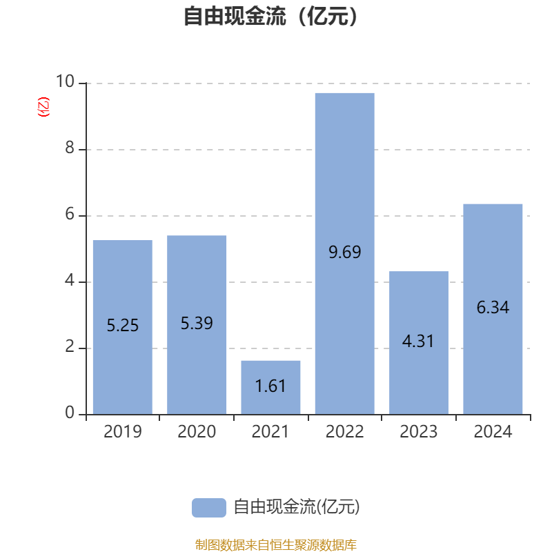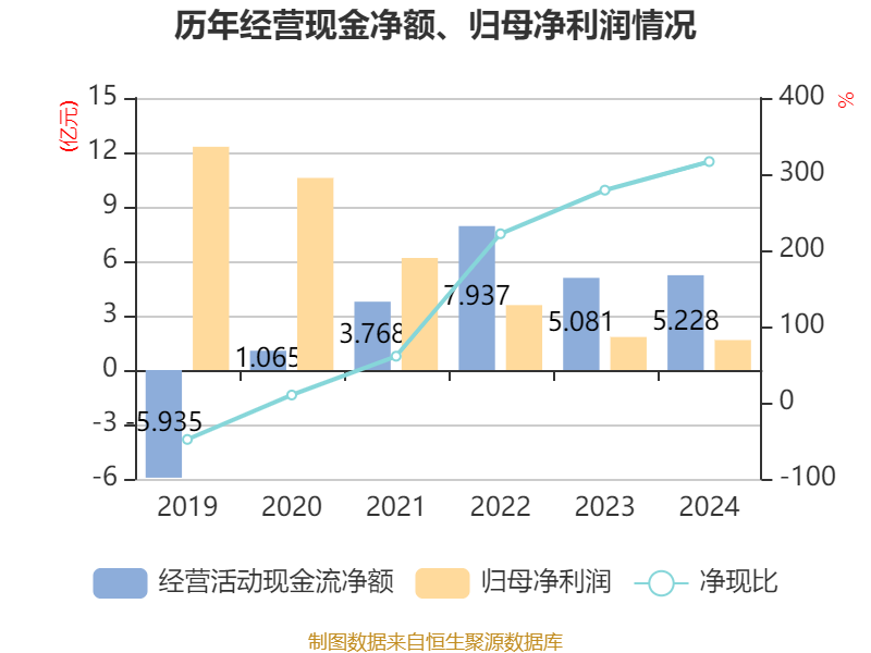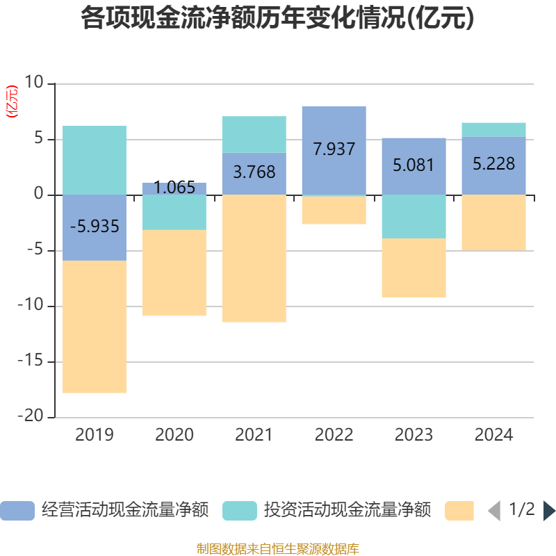 截至2024年,公司经营活动现金流净额为5.23亿元,同比增长2.89%;筹资活动现金流净额-5.01亿元,同比增加2965.04万元;投资活动现金流净额1.23亿元,上年同期为-3.94亿元。