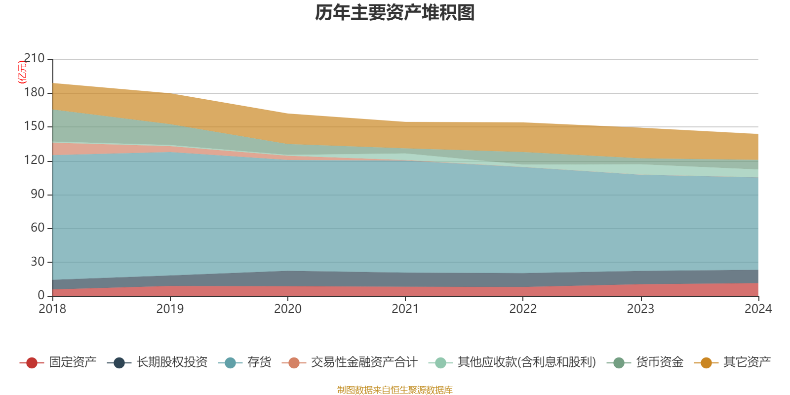 从存货变动来看,截至2024年末,公司存货账面价值为81.88亿元,占净资产的86.99%,较上年末减少3.23亿元。其中,存货跌价准备为7645万元,计提比例为0.93%。