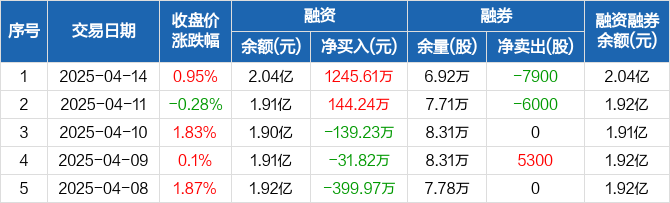 珍宝岛融资融券信息显示,2025年4月14日融资净买入1245.61万元;融资余额2.04亿元,较前一日增加6.51%。