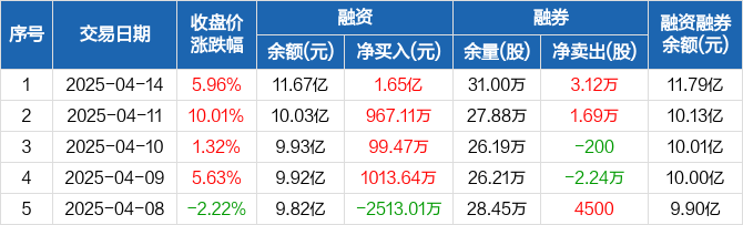 上海贝岭融资融券信息显示,2025年4月14日融资净买入1.65亿元;融资余额11.67亿元,较前一日增加16.41%。
