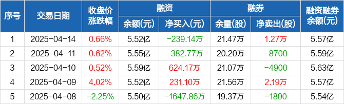 中科软融资融券信息显示,2025年4月14日融资净偿还239.14万元;融资余额5.52亿元,较前一日下降0.43%。