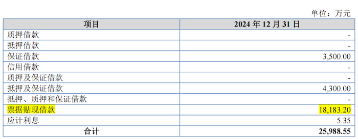 公司表示:“将期末已经贴现尚未终止确认的信用等级较低的银行承兑汇票、商业承兑汇票、财务公司承兑汇票等在短期借款列式。”2024年公司短期借款金额为2.60亿元,其中票据贴现借款金额为1.82亿元。