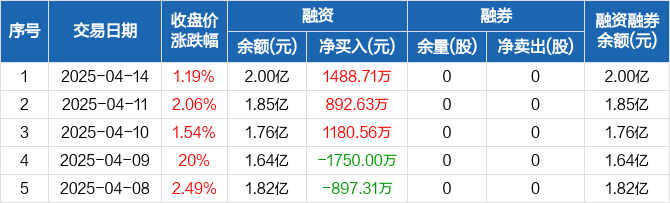 新余国科融资融券信息显示,2025年4月14日融资净买入1488.71万元;融资余额2亿元,较前一日增加8.04%。