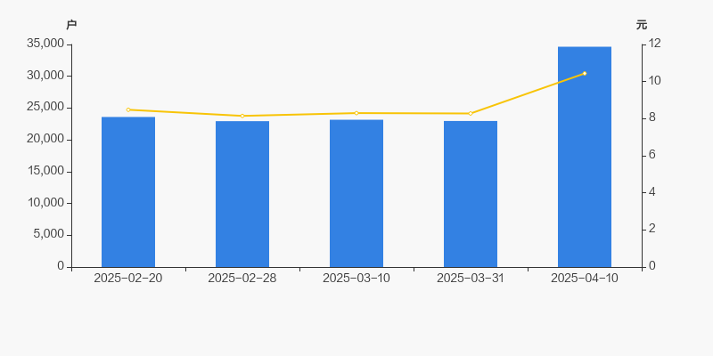 2025年2月20日至今,公司股东户数显著增长,区间涨幅为46.82%。2025年2月20日至2025年4月10日区间股价上涨23.11%。