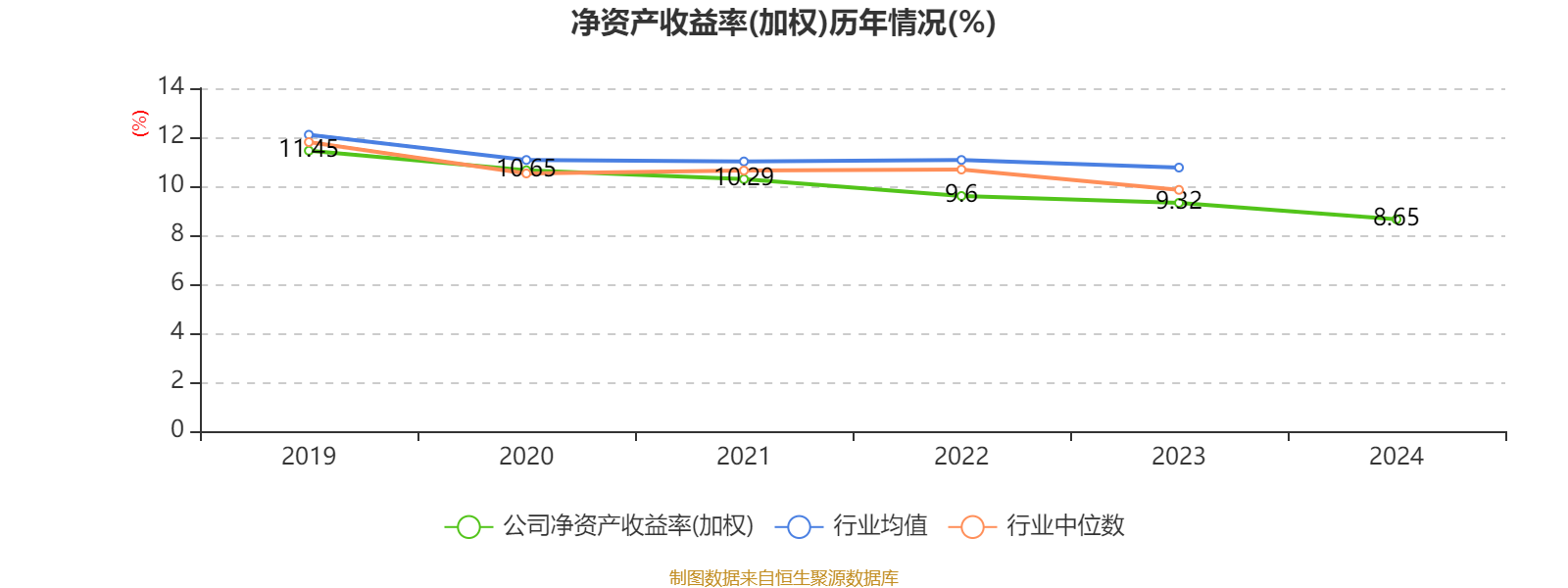 数据显示,2024年公司加权平均净资产收益率为8.65%,较上年同期下降0.67个百分点。