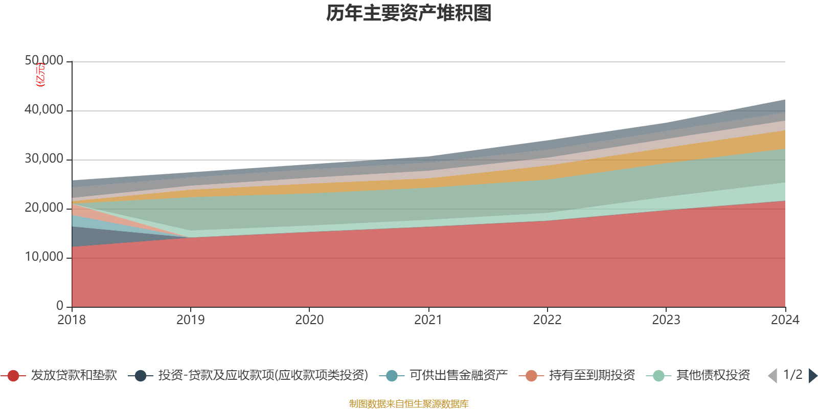 资产重大变化方面,截至2024年末,公司债权投资较上年末增加0.16%,占公司总资产比重下降2.03个百分点;其他债权投资较上年末增加36.73%,占公司总资产比重上升1.56个百分点;买入返售金融资产较上年末增加106.62%,占公司总资产比重上升1.47个百分点;发放贷款和垫款较上年末增加9.78%,占公司总资产比重下降1.32个百分点。