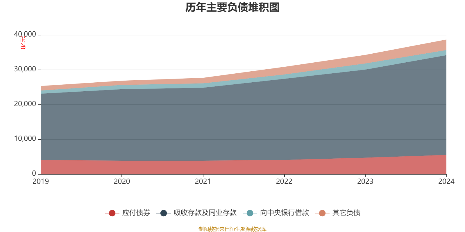 负债重大变化方面,截至2024年末,公司向中央银行借款较上年末减少16.5%,占公司总资产比重下降1.22个百分点;卖出回购金融资产款较上年末增加54.36%,占公司总资产比重上升0.78个百分点;拆入资金较上年末减少6.66%,占公司总资产比重下降0.48个百分点;应付债券较上年末增加16.92%,占公司总资产比重上升0.48个百分点。