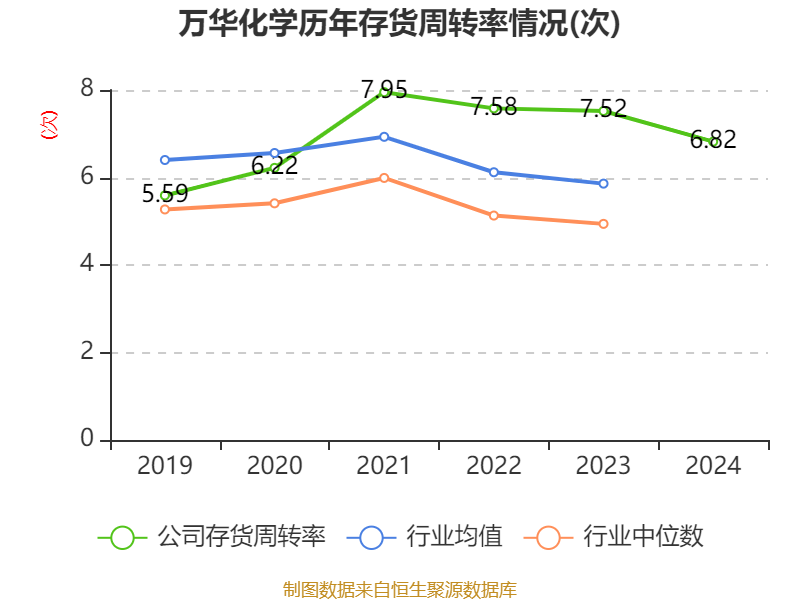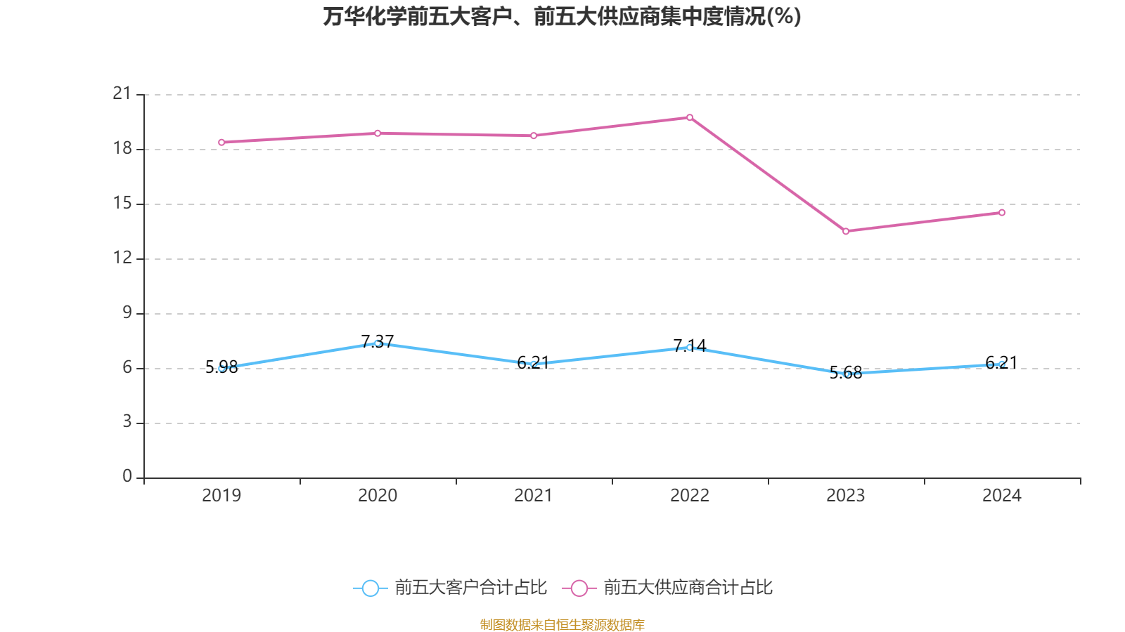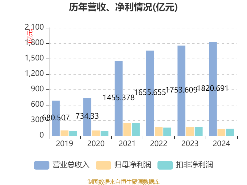 中证智能财讯万华化学(600309)4月15日披露2024年年度报告。2024年,公司实现营业总收入1820.69亿元,同比增长3.83%;归母净利润130.33亿元,同比下降22.49%;扣非净利润133.59亿元,同比下降18.74%;经营活动产生的现金流量净额为300.53亿元,同比增长12.15%;报告期内,万华化学基本每股收益为4.15元,加权平均净资产收益率为14.29%。公司2024年度分配预案为:拟向全体股东每10股派现7.3元(含税)。
