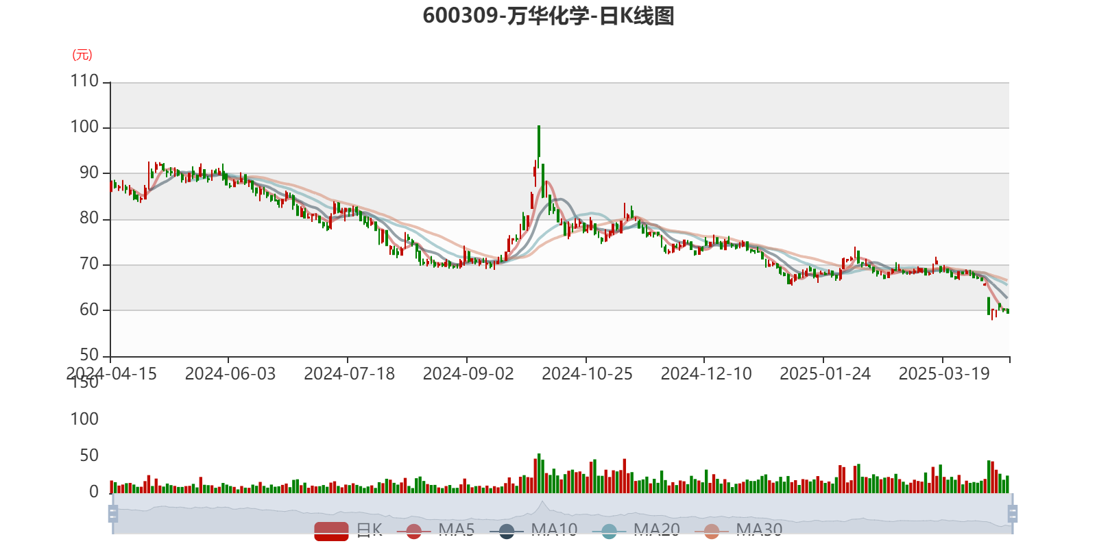 以4月14日收盘价计算,万华化学目前市盈率(TTM)约为14.32倍,市净率(LF)约1.97倍,市销率(TTM)约1.03倍。
